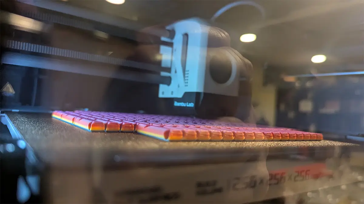 As I write this, my freezing-cold basement is filled with the chipper hum of a 3d printer making whistles. Hundreds of whistles now, thousands. All bright oranges and pinks and greens and blues, a full spectrum rainbow, tiny and loud. At the beginning of the year I got jumped into a crew printing whistles at a remarkable clip. They've shipped nearly 100,000 this month. 2500 of those printed by me over the course of the last few weeks, sent coast to coast in packets of 100, 200. The thousand I sent to Minneapolis with folks from Chicago who went up took three days to finish. Five hours to make a hundred, I run the printer 15 hours a day.